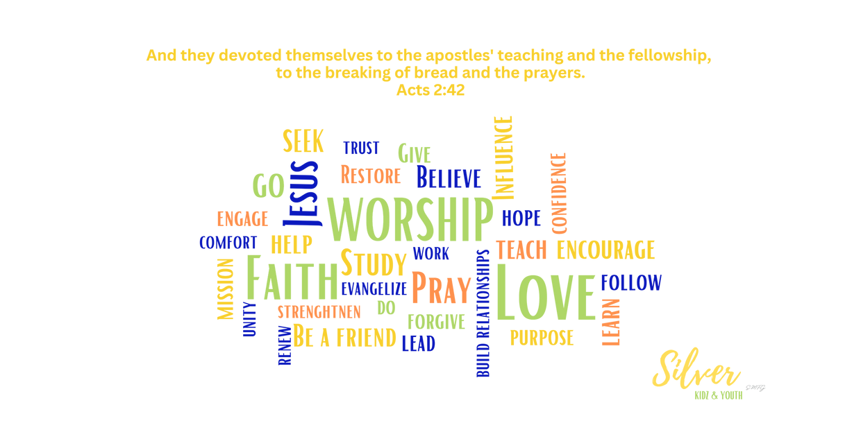 Our Silver Kidz Sunday class meets every Sunday morning at 10 am. We begin with small group lesson, transition to a large group lesson followed by a time of worship and prayer. If time allows, we also play games to build relationships among all who are involved, teachers, helpers and children alike!